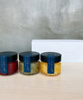 定番の湘南ゴールドマーマレード・いちごジャム・キウイジャムをそれぞれ1個ずつ、ギフト仕様の3個セットにしてお届けします。