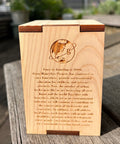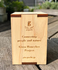 国産杉端材をアップサイクルした特製BOXには、銀座ミツバチプロジェクトのメッセージとvisionが記載されています。贈り物や手土産にも喜ばれるパッケージです。